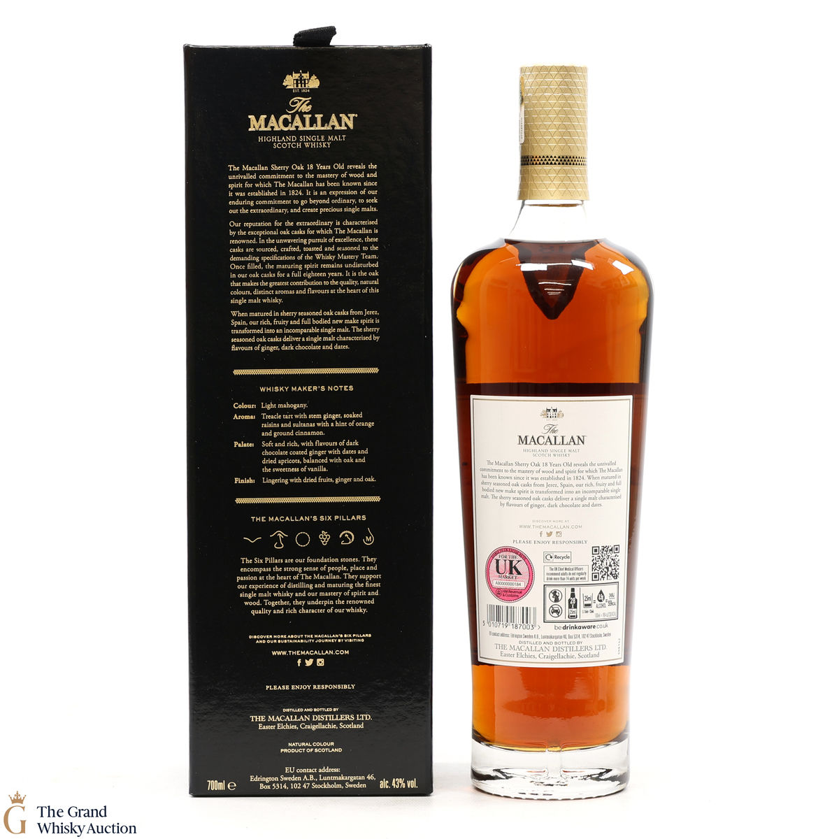 This annual release of The Macallan's popular 18 Year Old Sherry Oak is matured exclusively in sherry seasoned casks, built from both Spanish and American oak, providing a beautifully dark flavour with rich aromas.