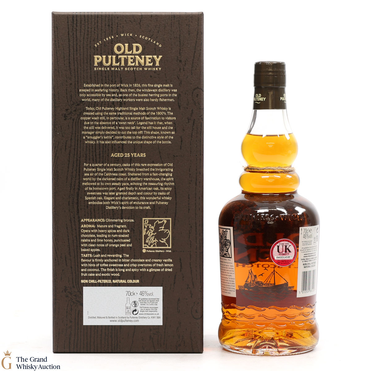 Old Pulteney 25 Year Old is a perfect marriage of American Oak and Spanish Oak. This single malt spent 22 years in bourbon casks before a final 3 years in oloroso sherry Spanish oak butts. Introduced in October 2017, this expression is one of the replacements for Old Pulteney's 17-year-old and 21-year-old bottlings