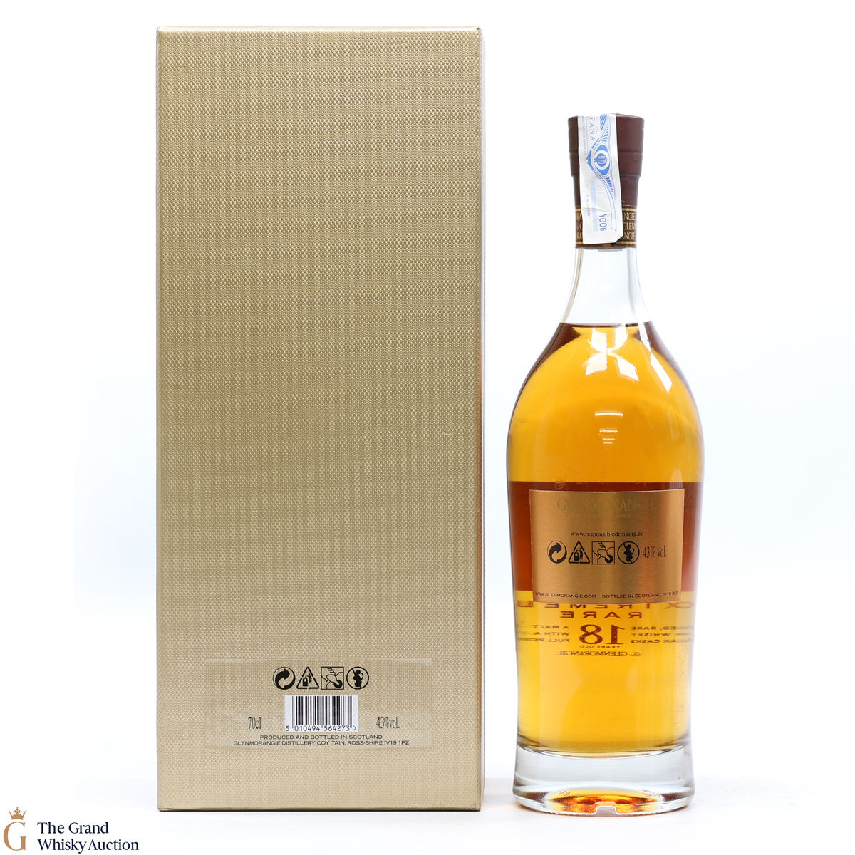 This bottle is an 18-year-old Extremely Rare, Highland single malt produced by Glenmorangie. It has been perfected by the sixteen men of Tain who have specially aged this bottle for 18 years in superior oak casks.