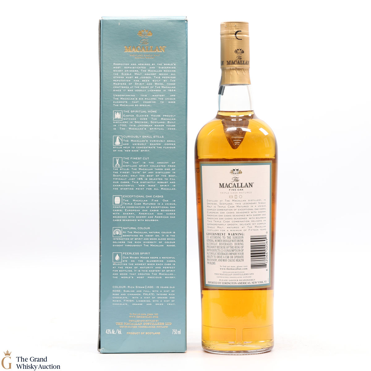 This 15 year old Macallan single malt was released in 2018 as part of the Triple Cask range (which was brought out to replace the Fine Oak range in 2018). This whisky has been matured for 15 years in a combination of European sherry seasoned casks, American sherry seasoned casks and American ex-bourbon casks.