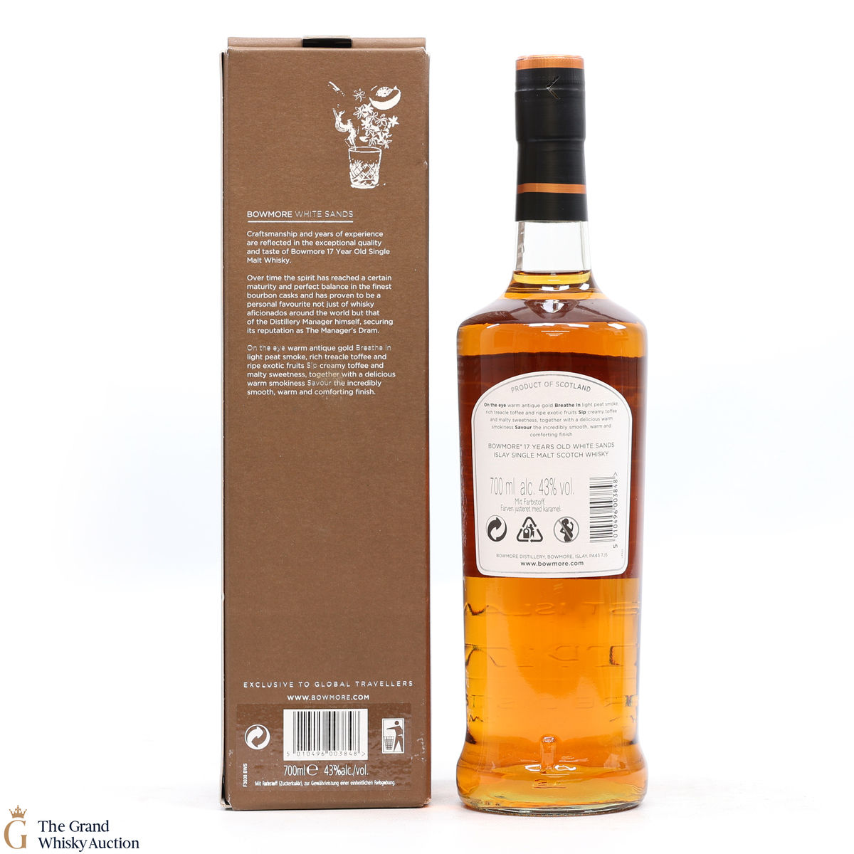 Due to the various ages of bottles and their seals, the condition of liquid is at the buyer's discretion and no claim can be lodged against failure/leakage in transit. Loss and breakage cover is available at 3% of the hammer price as standard. If the lot is not insured, no claim can be lodged against the courier or The Grand Whisky Auction for breakage or loss in transit.