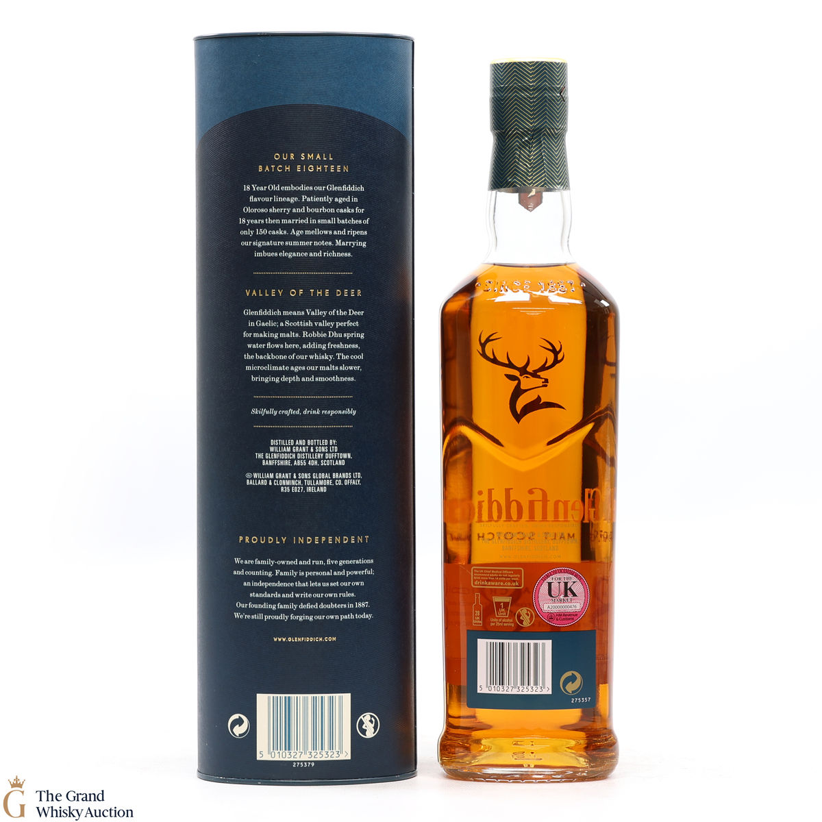 Matured in small batches the Glenfiddich 18 is arguably the most complex in the core range. The single malt has been matured in oloroso sherry and bourbon casks. It is very fragrant with tropical fruit and sherry cask influences, rich baked apple and cinnamon spice compliments by robust oak notes.