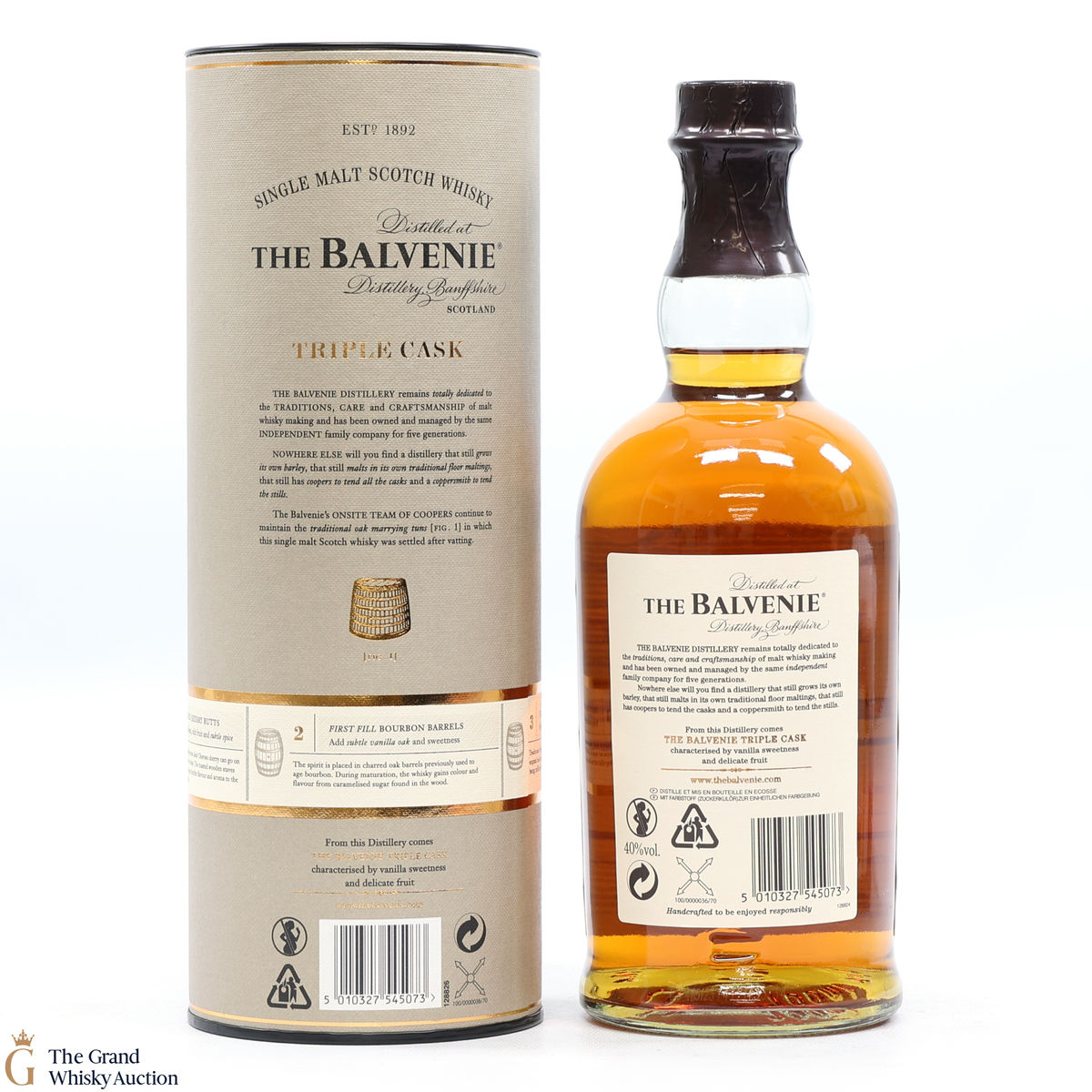 The Balvenie Triple Cask is a single malt Scotch whisky from this renowned Speyside based distillery. Matured in American oak barrels, traditional refill casks and first-fill Oloroso sherry butts, this single malt has a complex taste yet brings a great balance of fruit and vanilla.