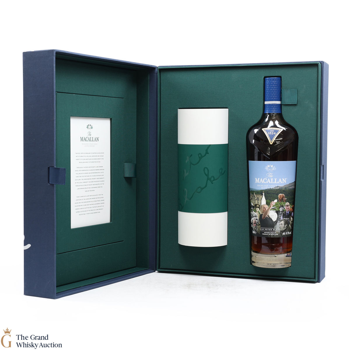 Along with this unique bottle of whisky is a scroll of artwork showing Sir Peter Blake's distinct style and a certificate detailing the history and heritage on which Sir Peter's art was based. There is also a piece of tracing paper which provides information on each character from The Macallan's history that Sir Peter chose to include in his art.