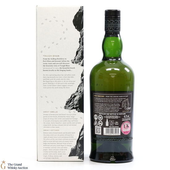 Matured in American oak and Oloroso sherry casks – Ardbeg Traigh Bhan is a 19 year old whisky and the Distillery’s 4th small batch release. Inspired by Islay’s Traigh Bhan beach (known locally as the Singing Sands), this rare aged spirit is an enchanting reflection of the place to which it gets its name.