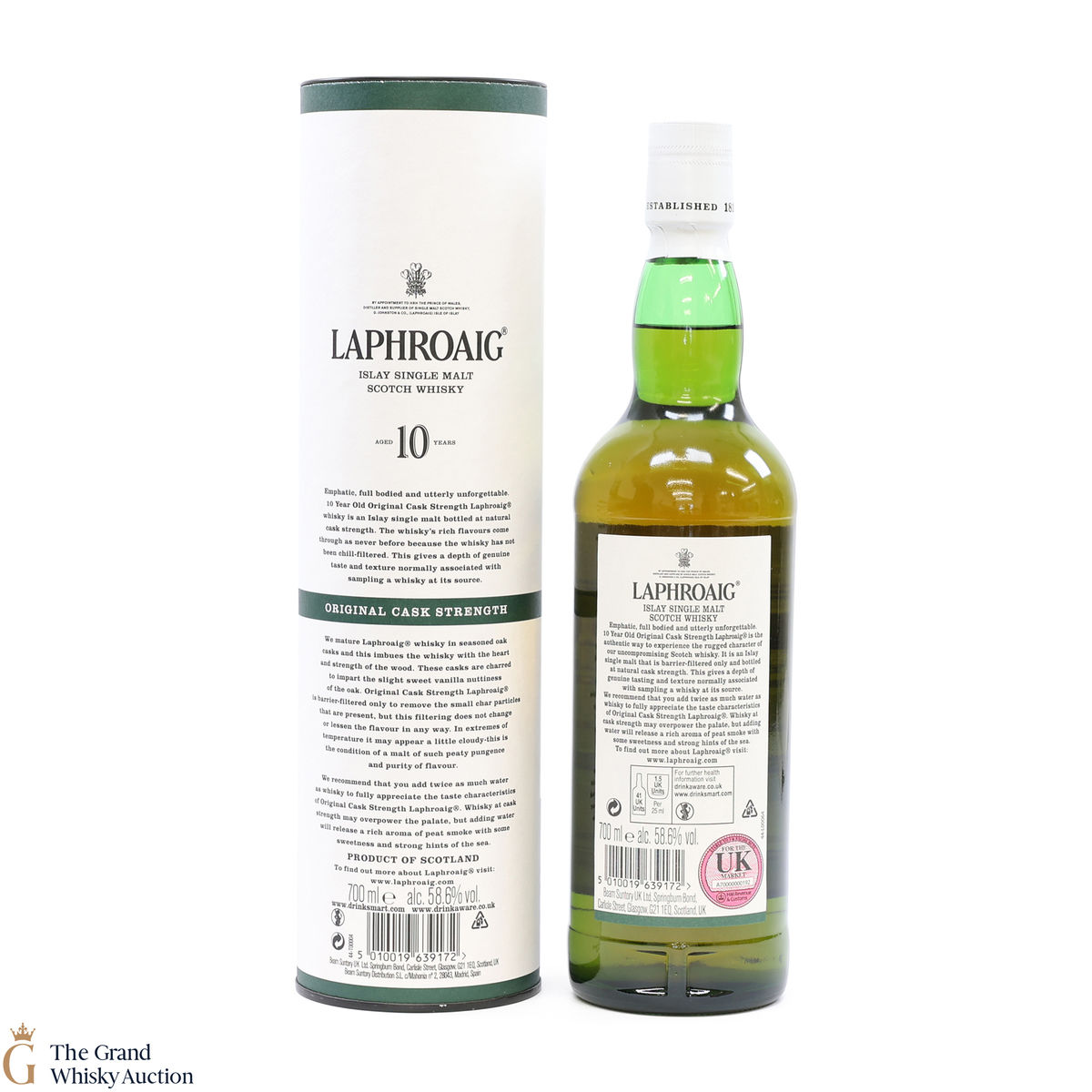 This original cask strength bottling of the medicinal 10 year old from Islay's bestselling distillery, Laphroaig. In making Laphroaig, malted barley is dried over a peat fire. The smoke from this peat, found only on Islay, gives Laphroaig its particularly rich flavour.