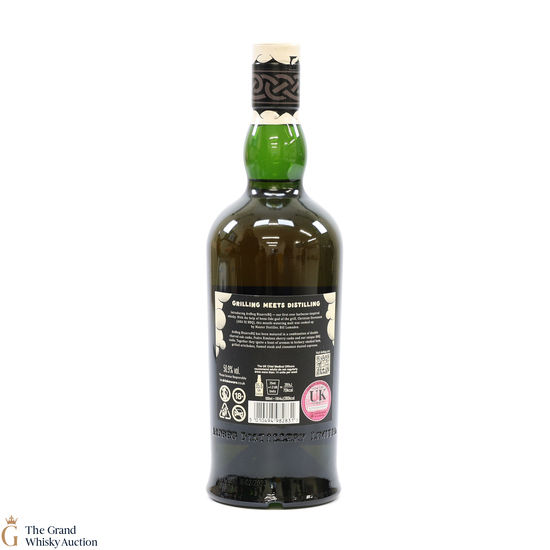 Matured in a combination of double charred oak casks, Pedro Ximénez sherry casks and Ardbeg's unique BBQ casks, this has created a feast of aromas in hickory smoked ham, grilled artichokes, flamed steak and cinnamon-dusted espresso.