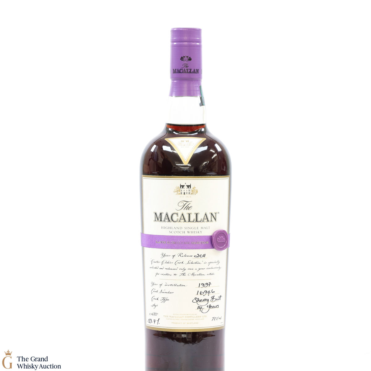 The 2011 Easter Elchies edition was distilled in 1997 and matured in Sherry butt casks before being bottled at 14 years old. The bottle is presented with the purple bow and wax emblem.