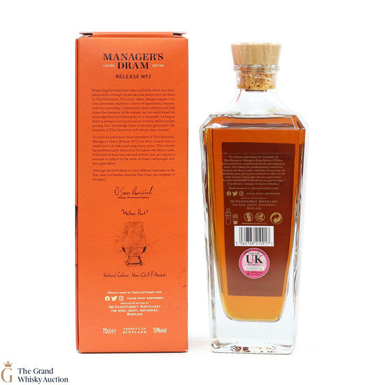The Glenturret Manager's Dram - Release 2 described as mellow peat. Matured in European Sherry Driven in warehouse 9 before being bottled in 2022.