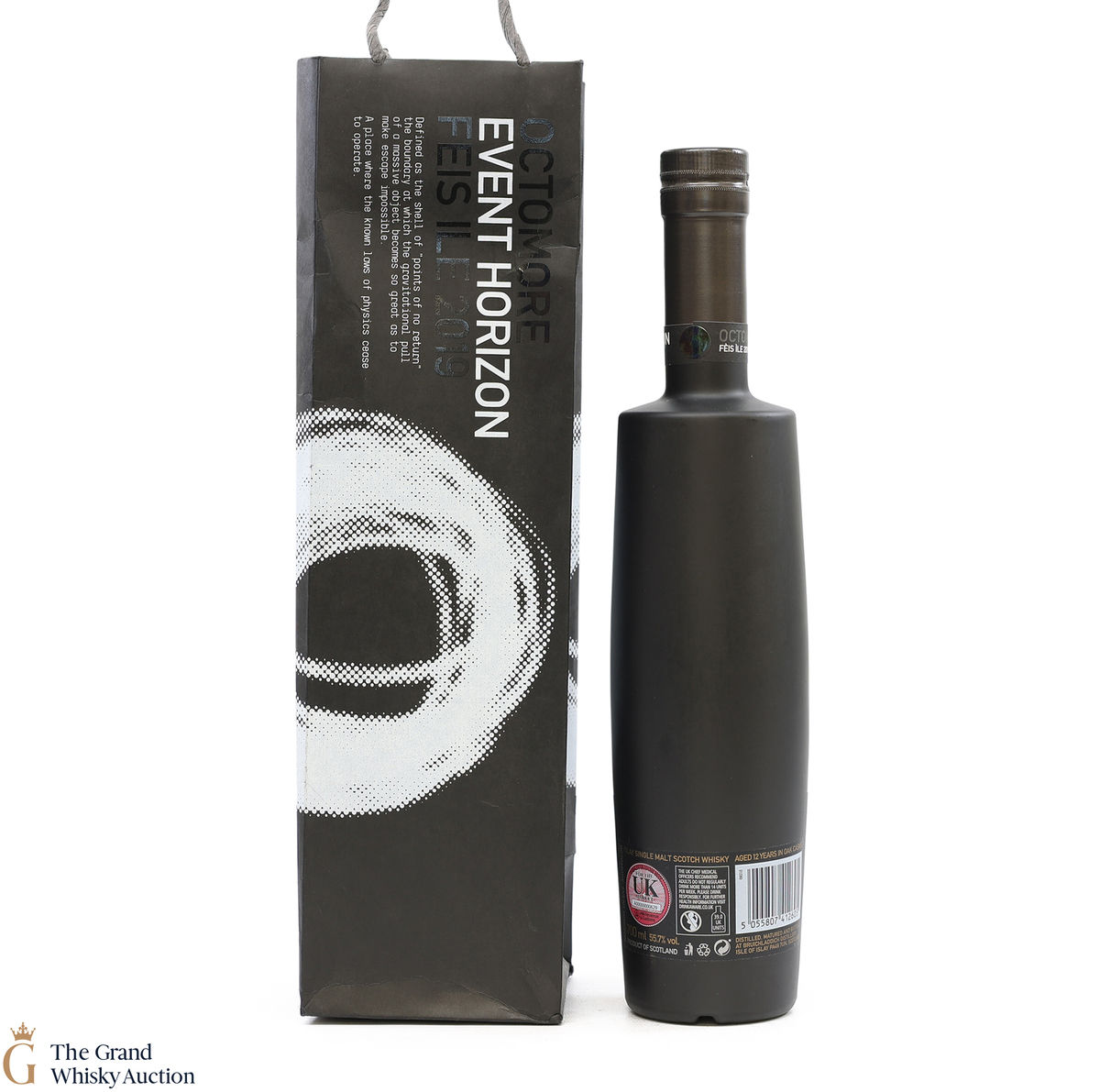 Octomore Event Horizon is the 2019 Fèis Ìle expression from Bruichladdich. It is the oldest Octomore released by the Islay distillery. This is one of only 2,000 bottles of Octomore Event Horizon which were released exclusively at the distillery during the festival and have already sold out completely.