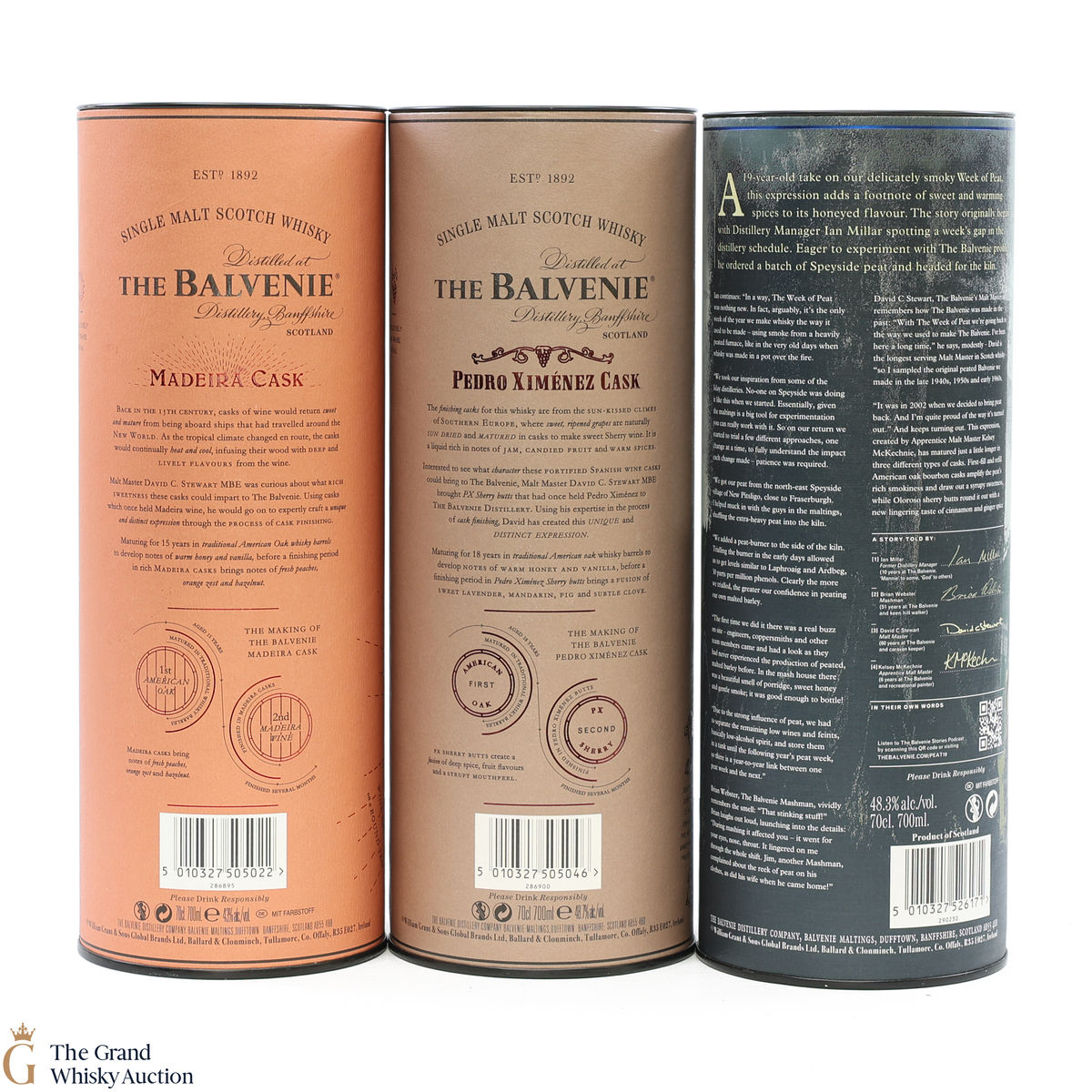 Balvenie 18 Year Old - Pedro Ximenez Cask - The initial cask maturation took place in American Oak barrels before being finished in PX casks for several months. 48.7% ABV, 70cl.
