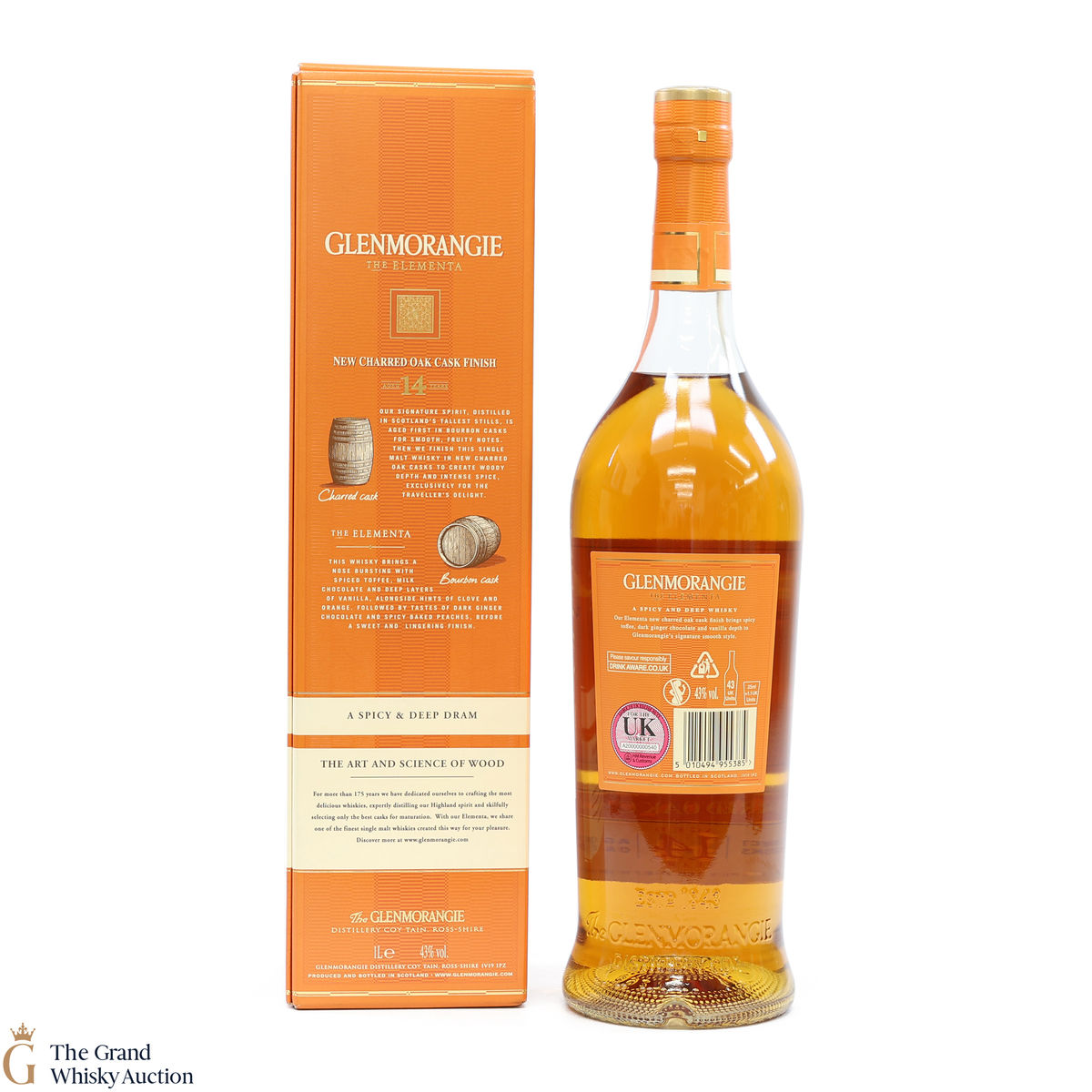 This spicy and deep Elementa celebrates Glenmornagie's skills in wood finishing, an art that brings new depths of flavour to their whisky. Matured initially in American oak bourbon casks to create smoothness and fruity notes and finished in charred oak casks, bringing forth a 14-year-old whisky of woody depth and intense spice. Available exclusively in travel retail.