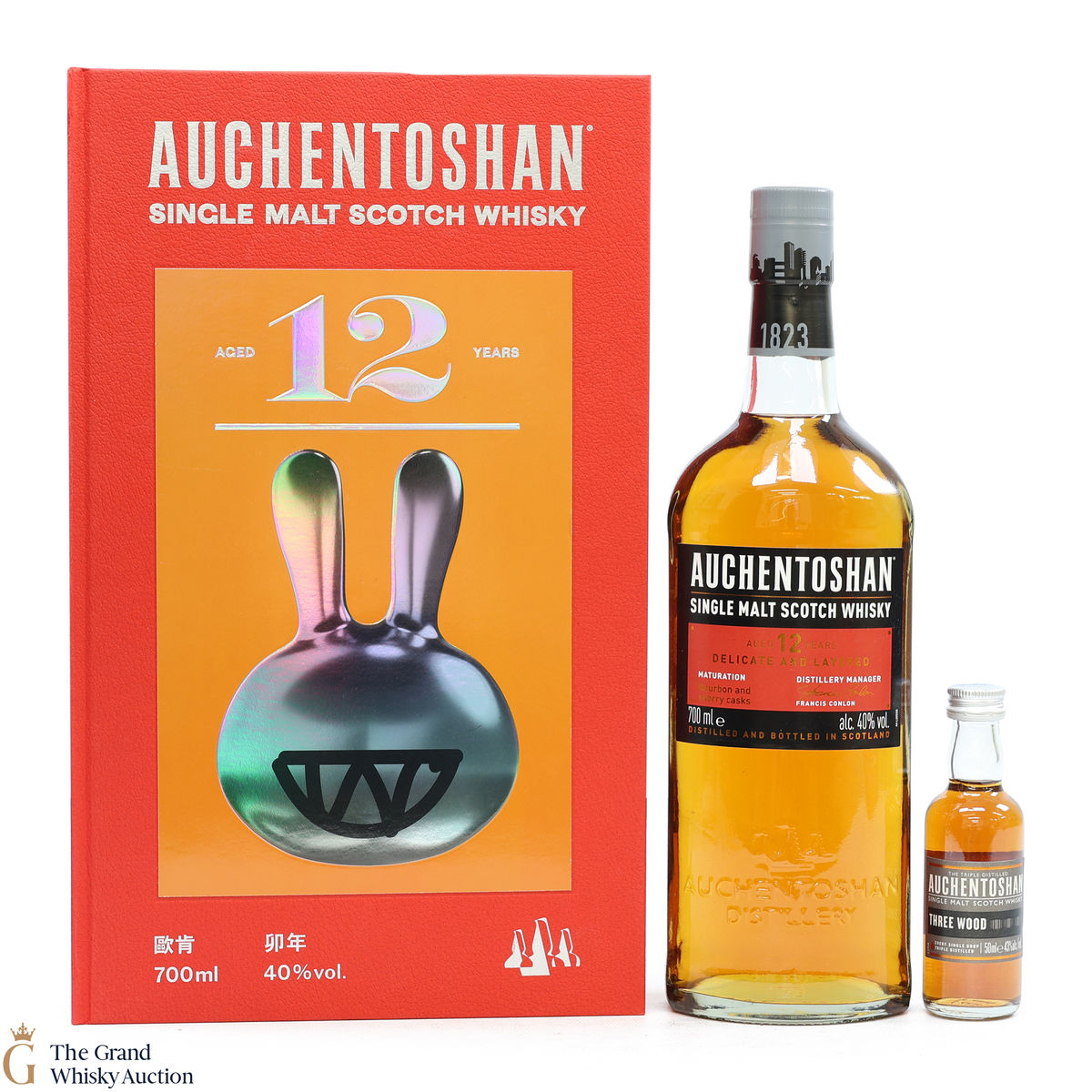 Auchentoshan - 12 Year Old 70cl - Year of the Rabbit Yeh Chungyi + 5cl Three Wood