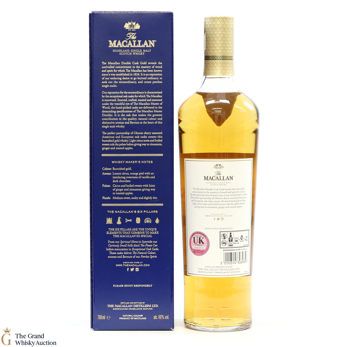Macallan Gold was first introduced in 2012 as part of the distillery's 1824 range of non-age statement expressions, before being renamed Macallan Gold Double Cask in 2018 as part of the new core range. Matured in a combination of first fill and refill American oak and European oak sherry casks to create an incredibly smooth and rich single malt. Soft gold in colour, this is the lightest expression of the Macallan range, but still packed with typical Speyside Macallan flavours.