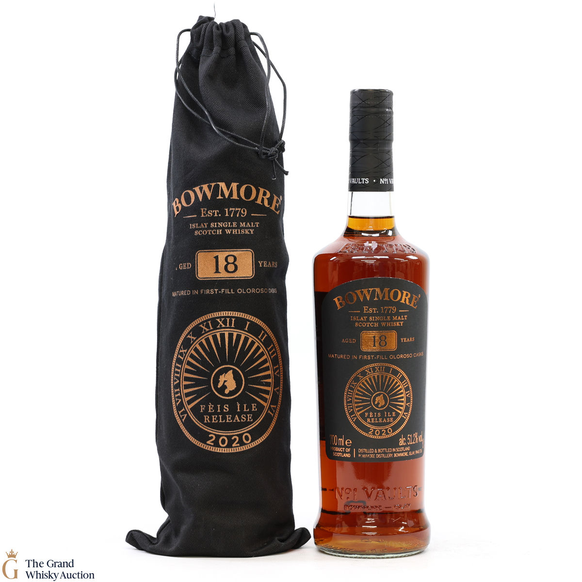 This is the Feis Ile 2020 release from Bowmore Distillery. Matured in a first-fill Oloroso Sherry cask for 18 years, this single malt was bottled at 51.2% ABV. This rare annual release from Bowmore is limited to just 3000 bottles.