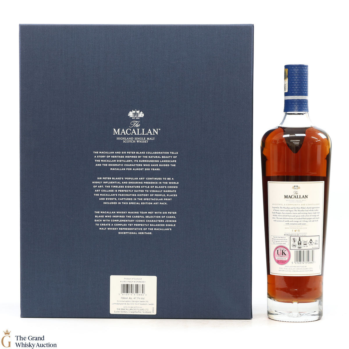 Part of The Anecdotes of Ages Collection, this is an extraordinary art and whisky collaboration with Sir Peter Blake. Being the third collaboration between the Macallan Distillery and Sir Peter Blake, this single malt was created to commemorate Sir Peter Blake's visit to The Macallan Estate. An Estate, a Community and a Distillery tells the story of some of the colourful characters from the distilleries past and present and features a label designed by Sir Peter Blake.