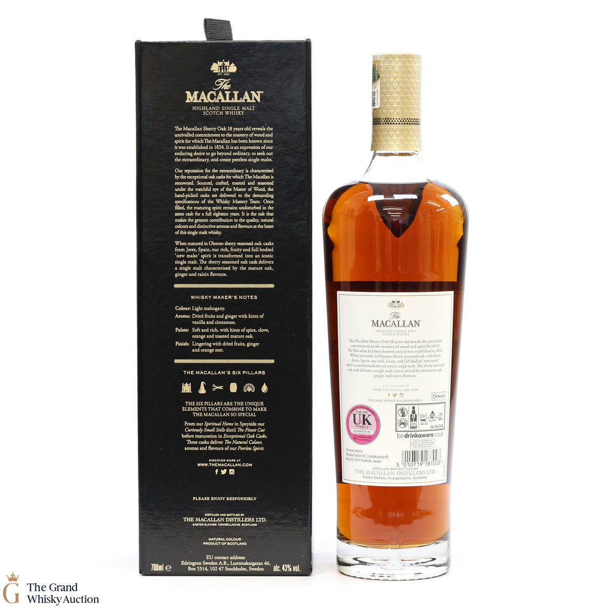 This annual release of The Macallan's popular 18 Year Old Sherry Oak is matured exclusively in sherry seasoned casks, built from both Spanish and American oak, providing a beautifully dark flavour with rich aromas.