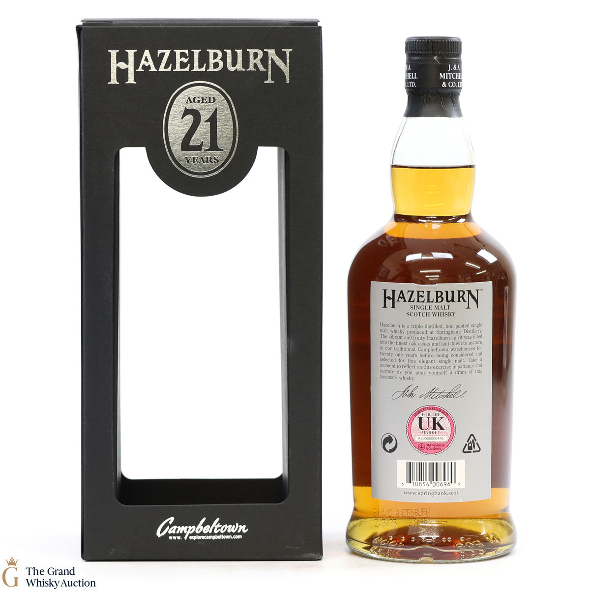 This Hazelburn single malt has matured in Springbank's warehouses in Campbeltown for 21 years and has a cask makeup of 80% bourbon, 10% port, and 10% sherry casks.