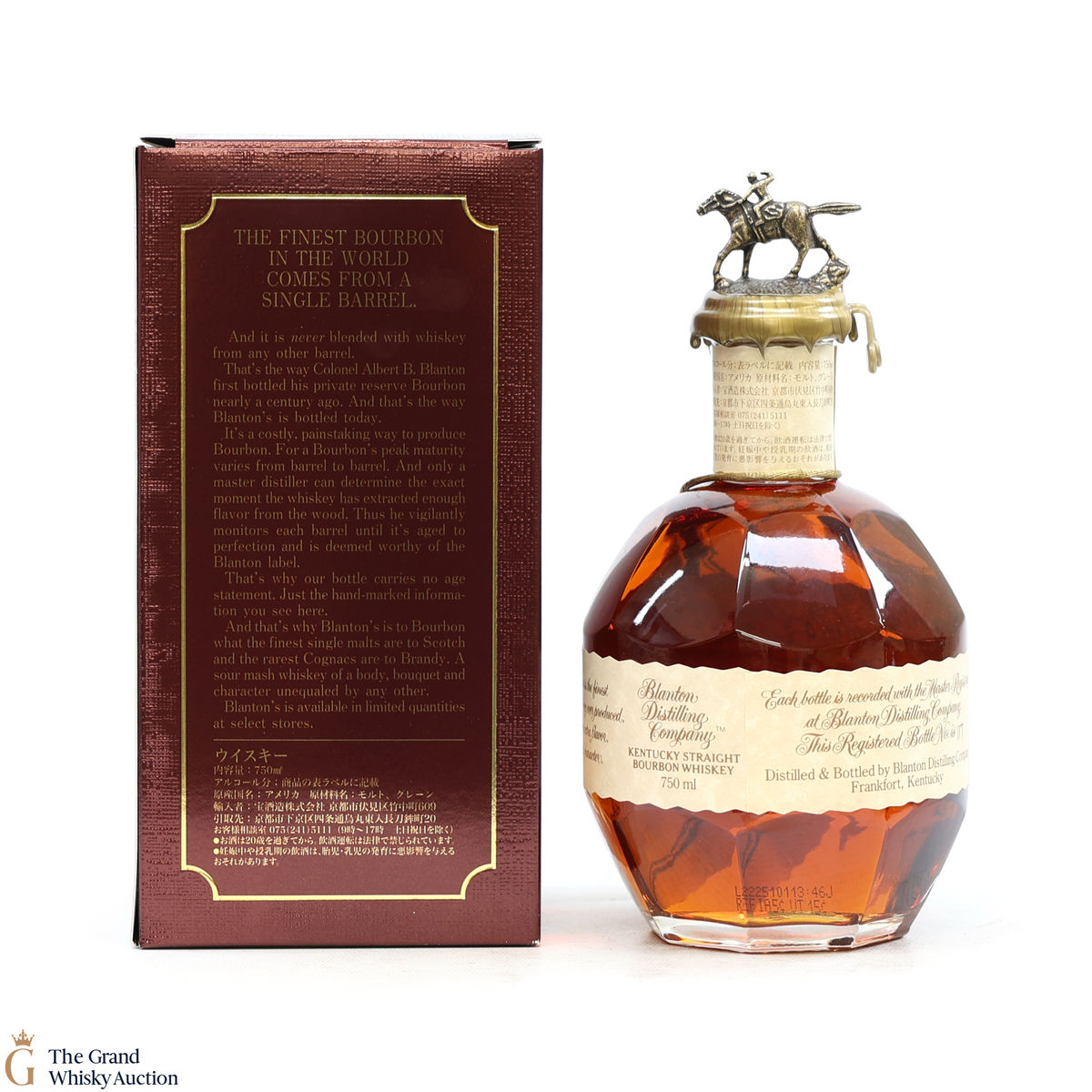 PLEASE NOTE: The wax seal on Blanton's bottles are prone to cracking in transit due to their design. Therefore, as stated in our T&C’s, we do not and will not accept liability should the seal be breached, broken, split or leak in transit. Additionally, please know due to the design of the internal cardboard packaging that surrounds the top of the bottles, it too may be torn. By bidding on this lot you have understood this to be true. Insurance is for complete breakage or loss in transit only.