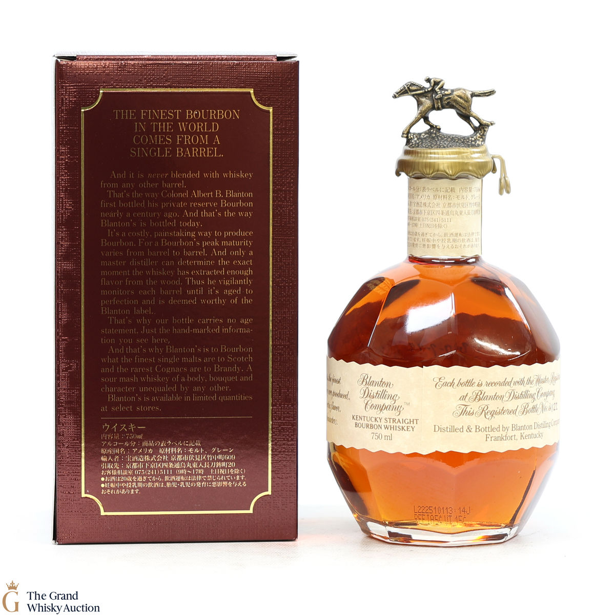 PLEASE NOTE: The wax seal on Blanton's bottles are prone to cracking in transit due to their design. Therefore, as stated in our T&C’s, we do not and will not accept liability should the seal be breached, broken, split or leak in transit. Additionally, please know due to the design of the internal cardboard packaging that surrounds the top of the bottles, it too may be torn. By bidding on this lot you have understood this to be true. Insurance is for complete breakage or loss in transit only.