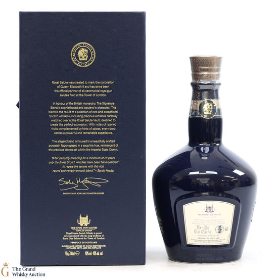 This 21 Year Old is presented in a unique porcelain flagon, painted with a sapphire glaze reminiscent of the gems set within the Imperial State Crown.