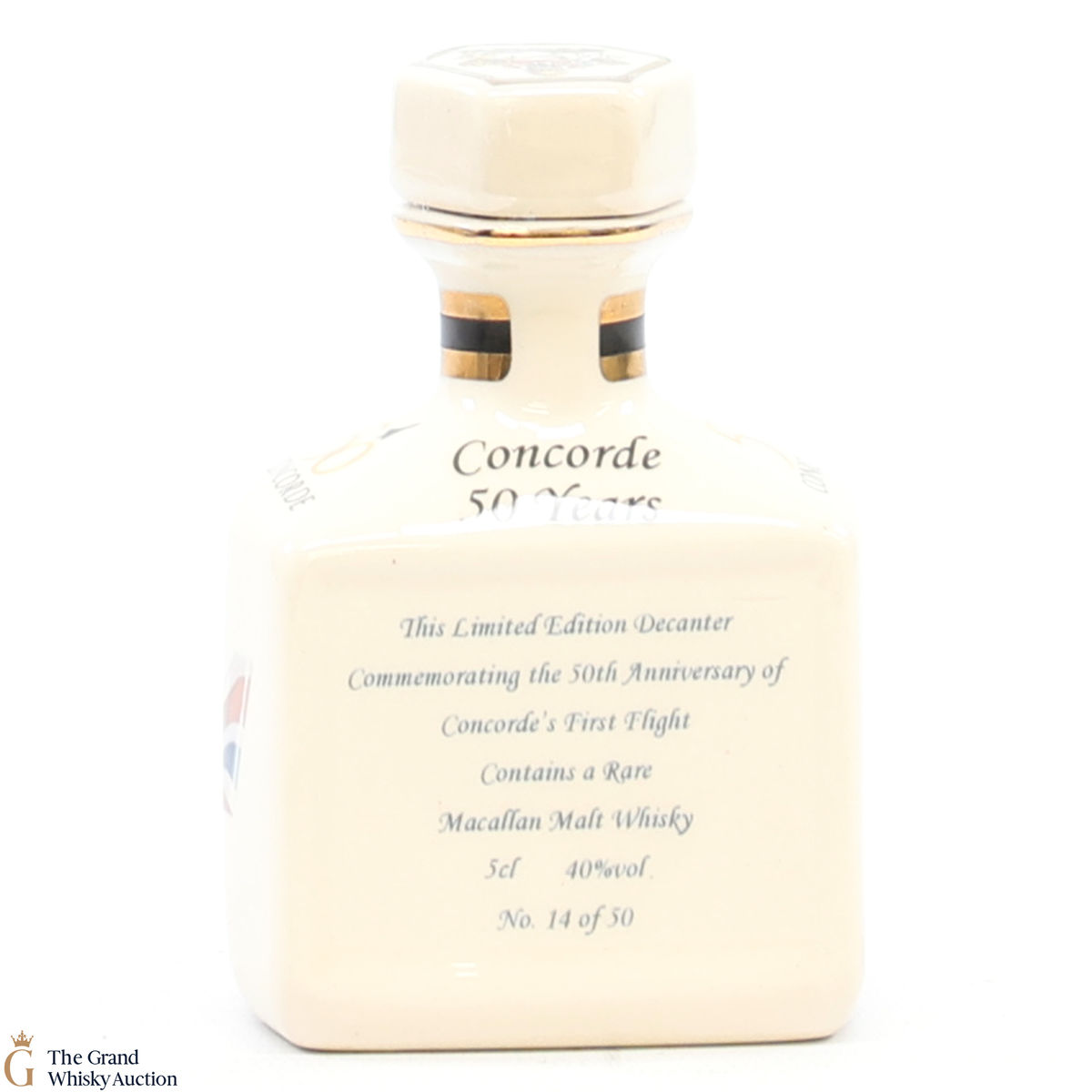 A mini decanter commemorating the 50th anniversary of Concorde's First Flight. Filled with Macallan, this is one of 50 bottles released.