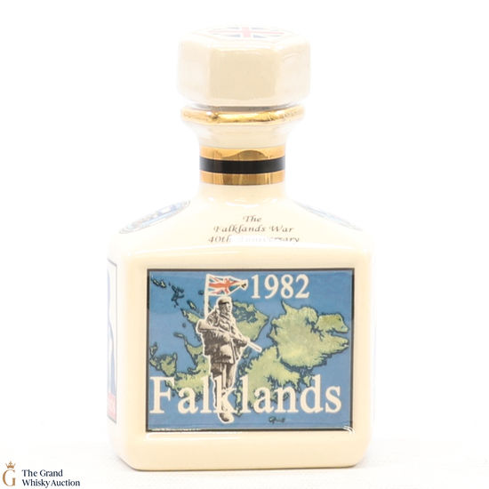 A mini decanter commemorating the 40th anniversary of the Falklands War. Filled with Macallan, this is one of 40 bottles released.