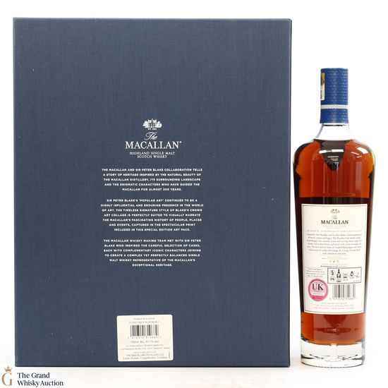 Part of The Anecdotes of Ages Collection, this is an extraordinary art and whisky collaboration with Sir Peter Blake. Being the third collaboration between the Macallan Distillery and Sir Peter Blake, this single malt was created to commemorate Sir Peter Blake's visit to The Macallan Estate. An Estate, a Community and a Distillery tells the story of some of the colourful characters from the distilleries past and present and features a label designed by Sir Peter Blake.