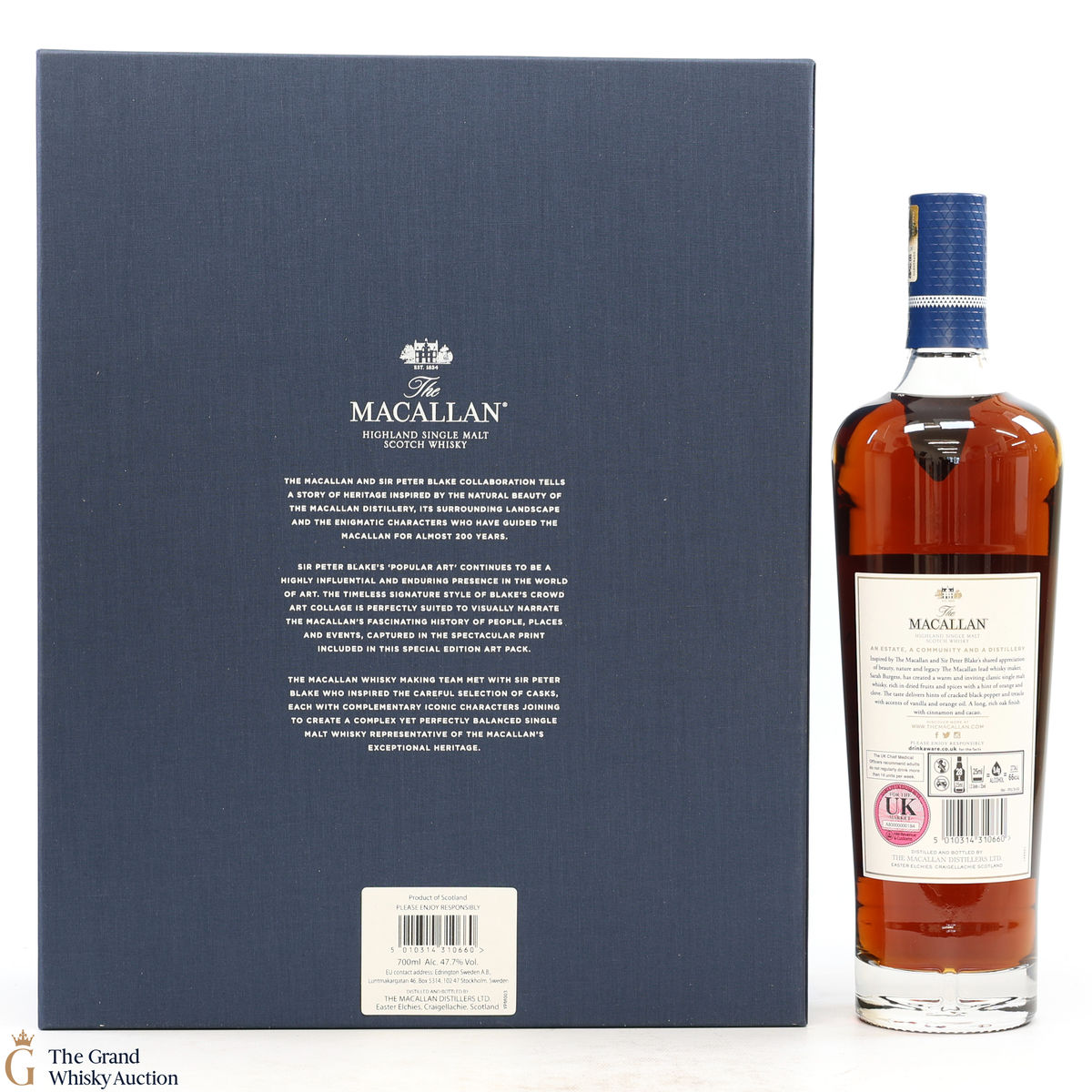 Along with this unique bottle of whisky is a scroll of artwork showing Sir Peter Blake's distinct style and a certificate detailing the history and heritage on which Sir Peter's art was based. There is also a piece of tracing paper which provides information on each character from The Macallan's history that Sir Peter chose to include in his art.