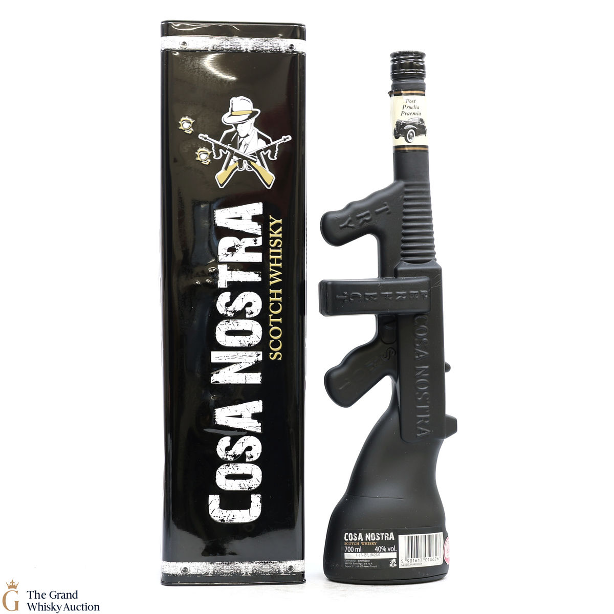 Cosa Nostra Scotch Whisky comes in a presentation bottle that is a replica of a 1920's vintage Tommy Gun from the era of legendary Al Capone and Lucky Luciano.