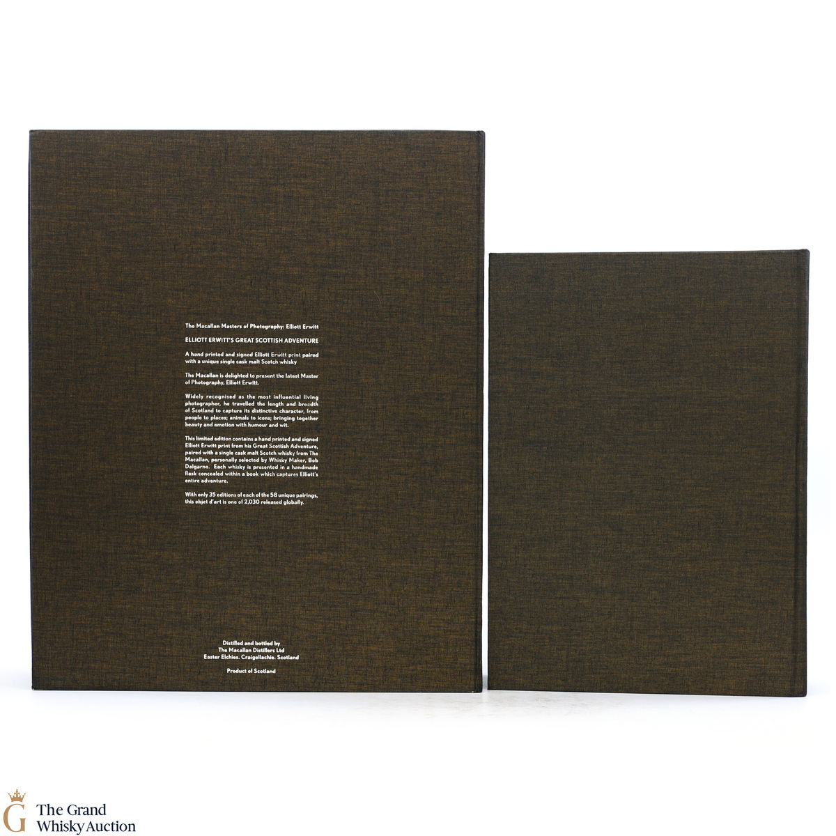 From the distillery - "The Masters of Photography: Elliott Erwitt Edition was The Macallan’s most extensive, and ambitious to date, with 58 unique single cask whiskies being paired with a different signed print captured during his Scottish adventure. Only 35 of each of the exclusive pairings were made available, a complete global release of 2,030."