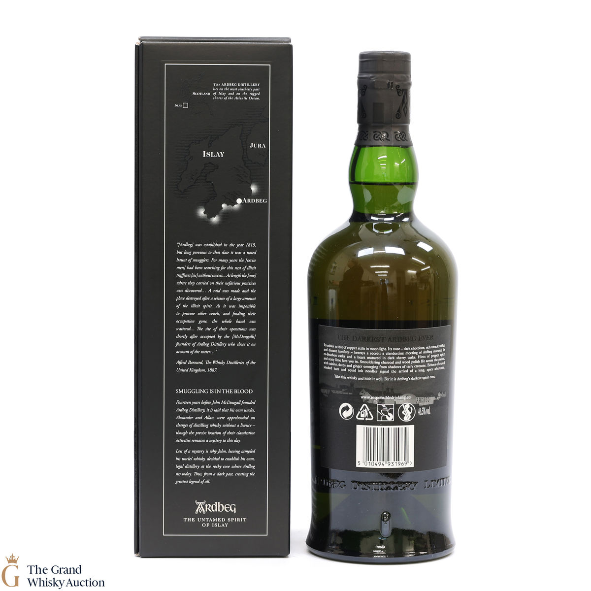 The Ardbeg Dark Cove was matured in ex-bourbon and dark Sherry casks to create ‘The Darkest Ardbeg Ever.’ This release, although bottled at a lower ABV than the Committee Release, has garnered great reviews, including one from Dramming.com's Oliver Klimek. It has notes of dark fruits, intense peat, ginger and bacon, with a long smoky finish. It is said to be created to honour the Islay coastline's shadowy past – although the colour isn’t too dark at all, the dark casks used provide plenty of oaky depth.