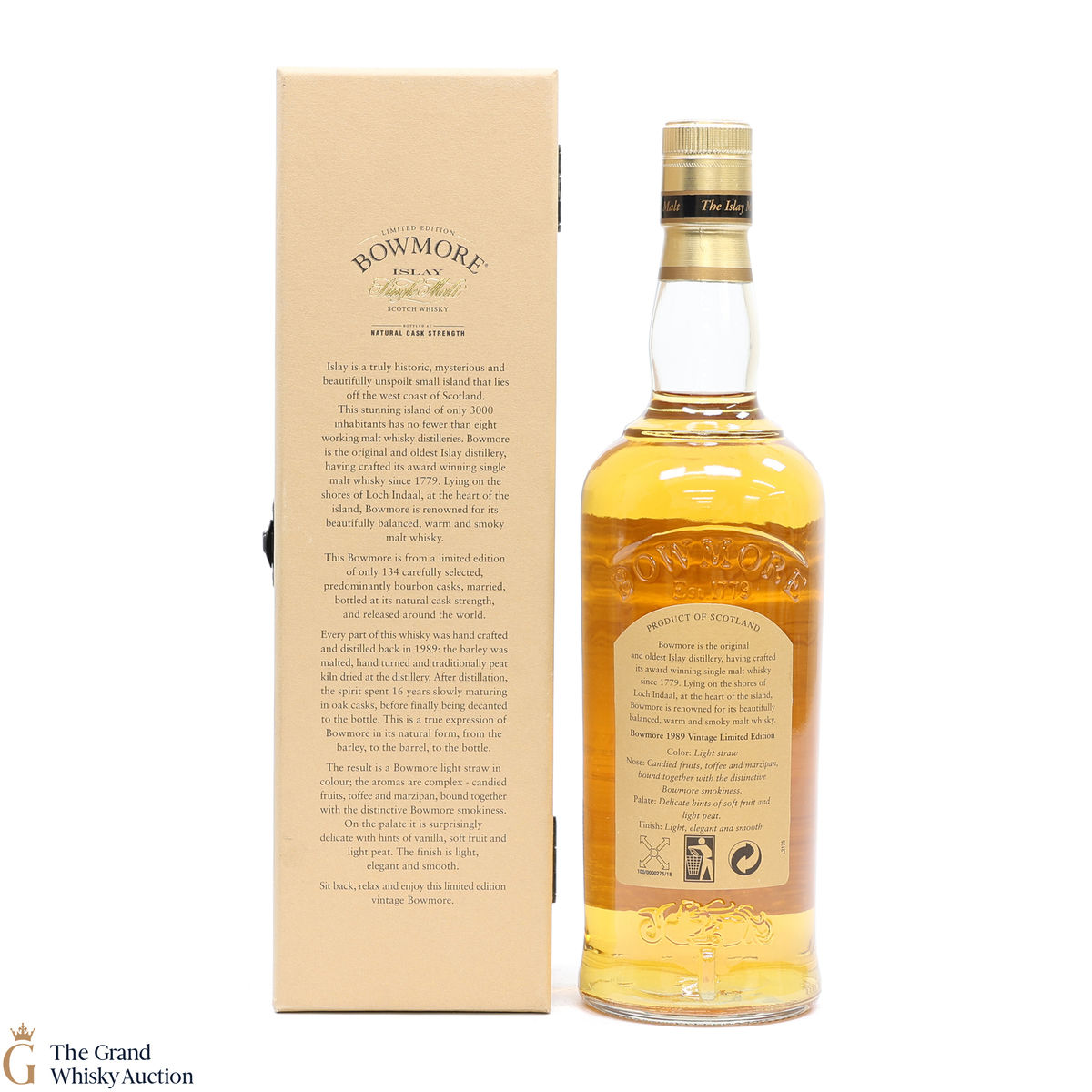 This Bowmore 1989 vintage is a limited edition, produced from 134 casks and released at the natural cask strength of 51.8%. The first of what has become a series of successful cask-strength Bowmore vintage releases.