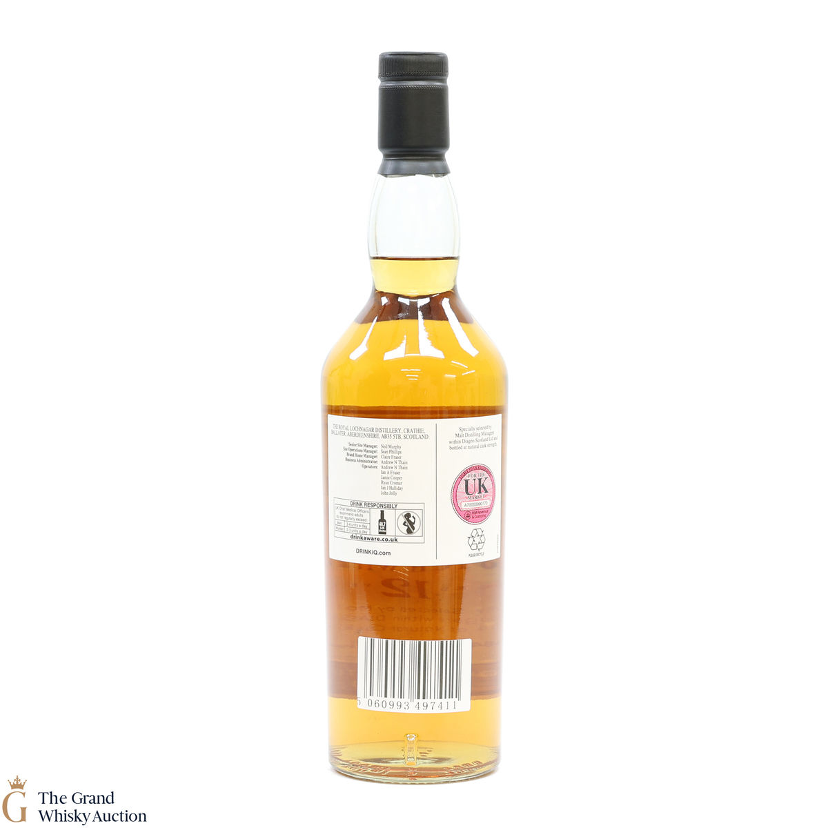 Due to the various ages of bottles and their seals, the condition of liquid is at the buyer's discretion and no claim can be lodged against failure/leakage in transit. Loss and breakage cover is available at 3% of the hammer price as standard. If the lot is not insured, no claim can be lodged against the courier or The Grand Whisky Auction for breakage or loss in transit.