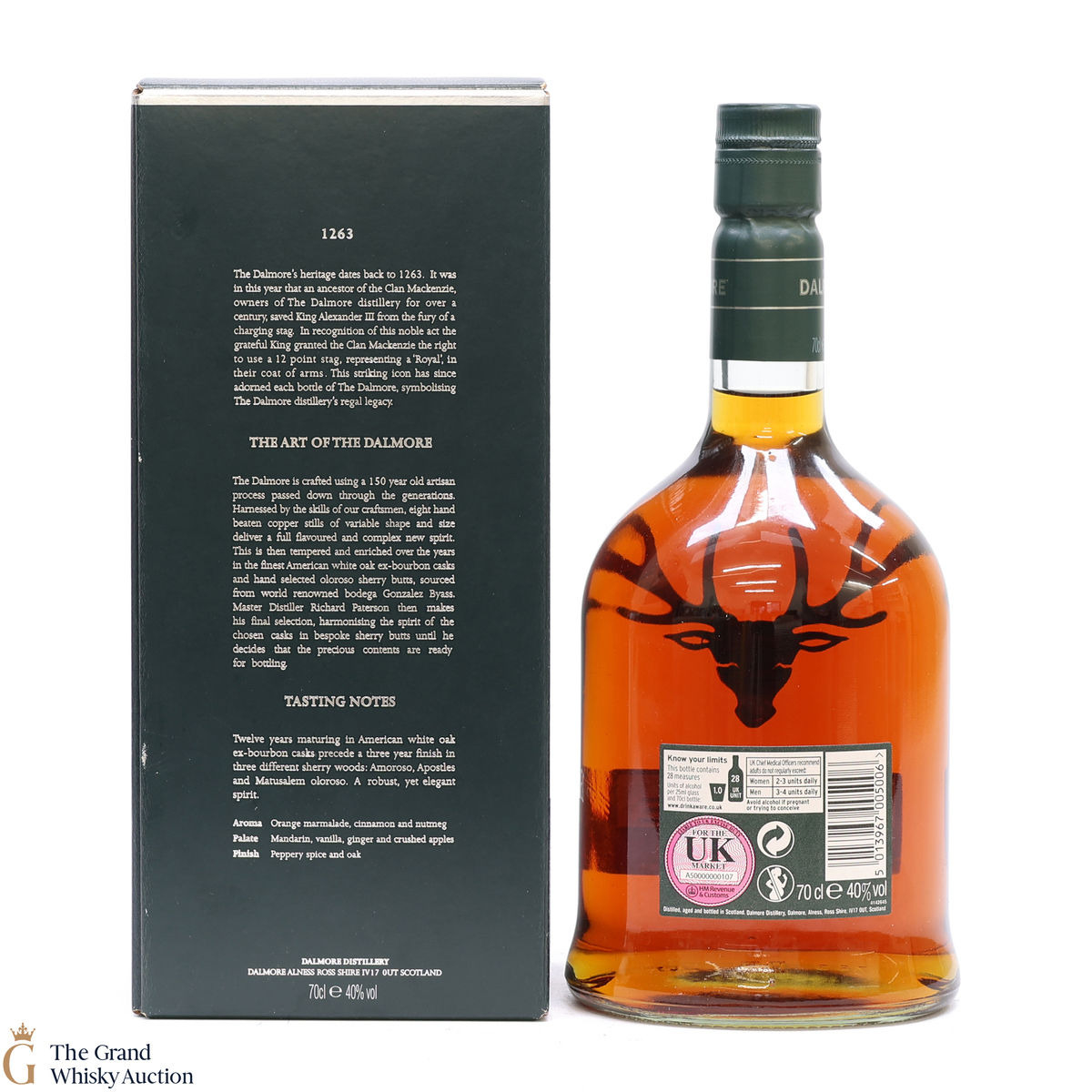 This Dalmore 15 year old was matured for 12 years in American white oak ex-bourbon casks and then a further maturation in three different sherry casks: Amoroso, Apostoles and Matusalem Oloroso.