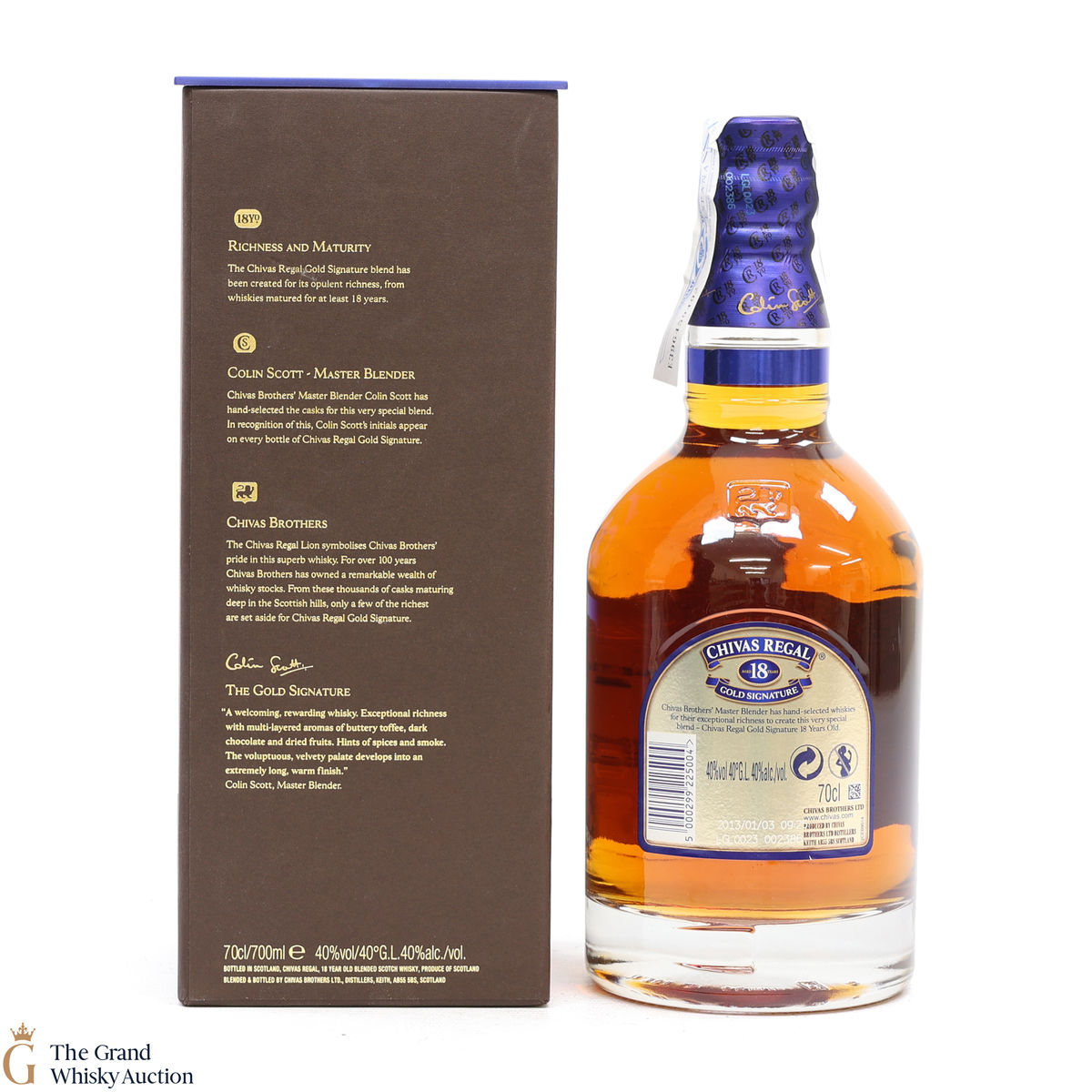 This is a 70cl bottling of Chivas Regal 18 Year Old Gold Signature. The packaging and bottling code indicate that it was bottled in 2010.