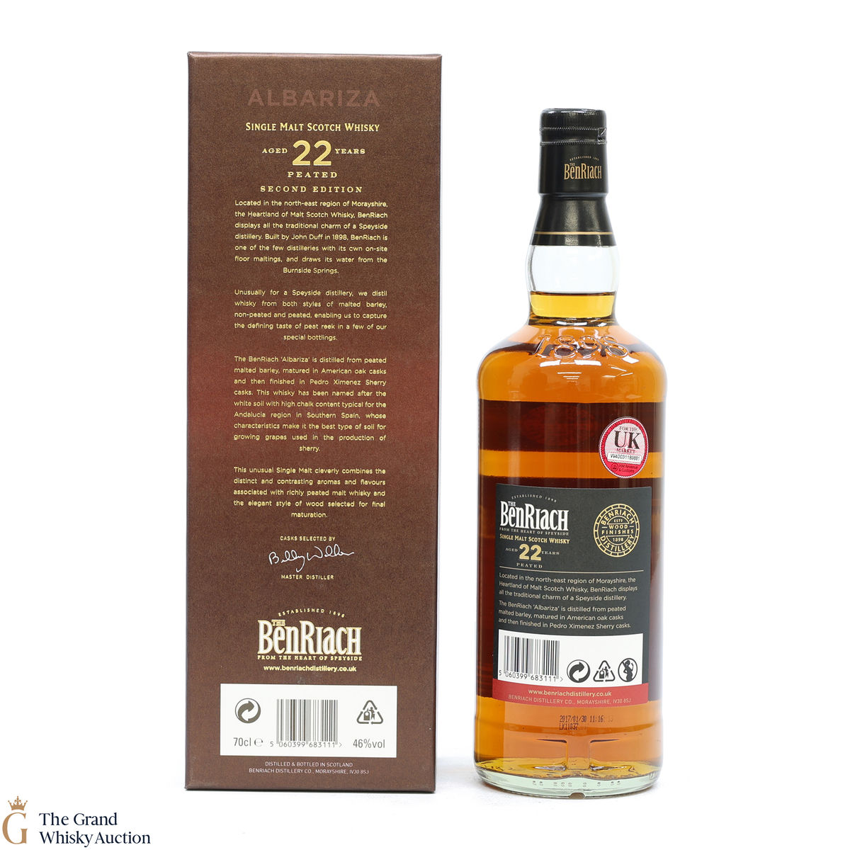 A 22-year-old single malt from the BenRiach distillery, aged in American bourbon barrels and finished in PX casks. This finishing period has given a rich, fruity sweetness to the whisky.