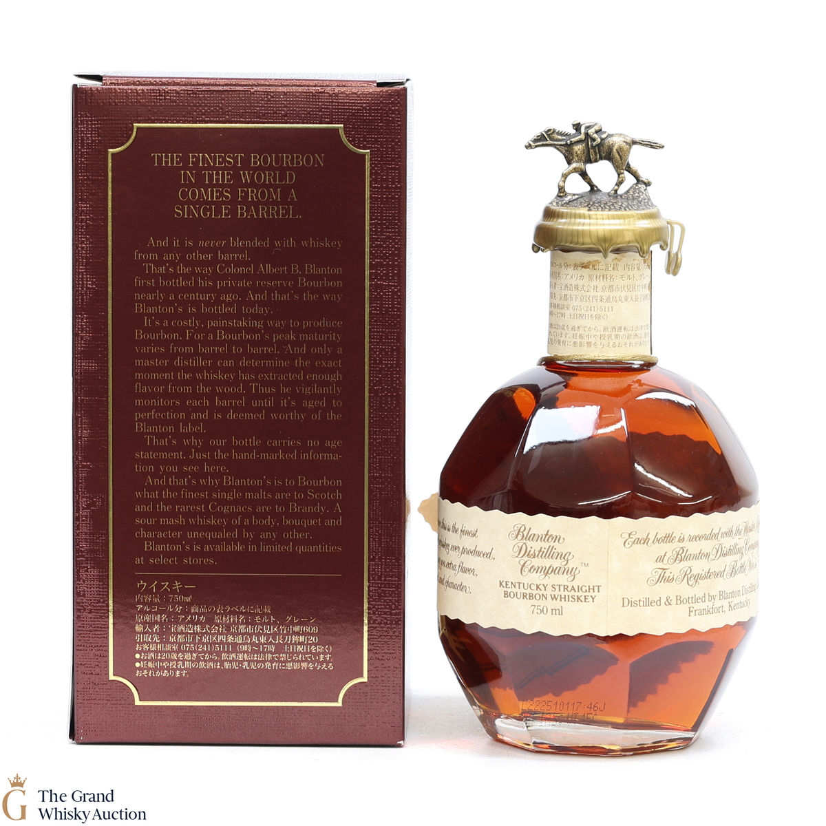 PLEASE NOTE: The wax seal on Blanton's bottles are prone to cracking in transit due to their design. Therefore, as stated in our T&C’s, we do not and will not accept liability should the seal be breached, broken, split or leak in transit. Additionally, please know due to the design of the internal cardboard packaging that surrounds the top of the bottles, it too may be torn. By bidding on this lot you have understood this to be true. Insurance is for complete breakage or loss in transit only.