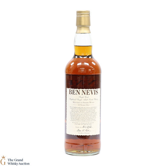 Distilled at Ben Nevis Distillery in October 1996, matured for 15 years in a single sherry cask (#1654) before being bottled in September 2012.