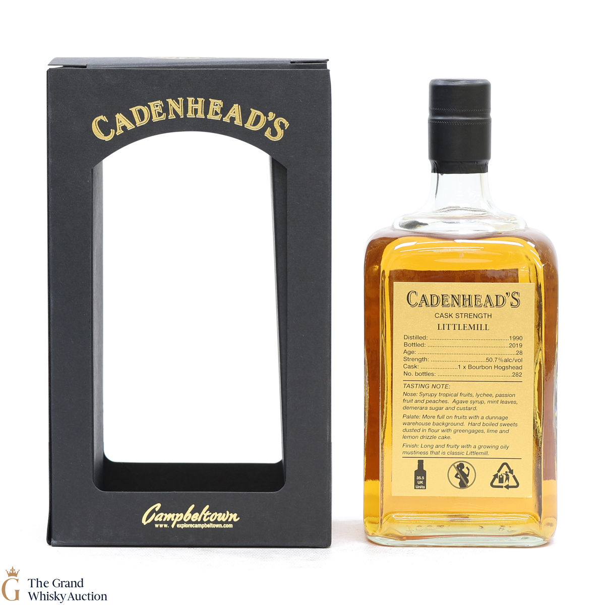 Distilled at the now-closed Littlemill Distillery in 1990, this single malt was matured in a Bourbon Hogshead for 28 years before being bottled in 2019. Bottled at a cask strength of 50.7% for Cadenhead's Single Cask collection.