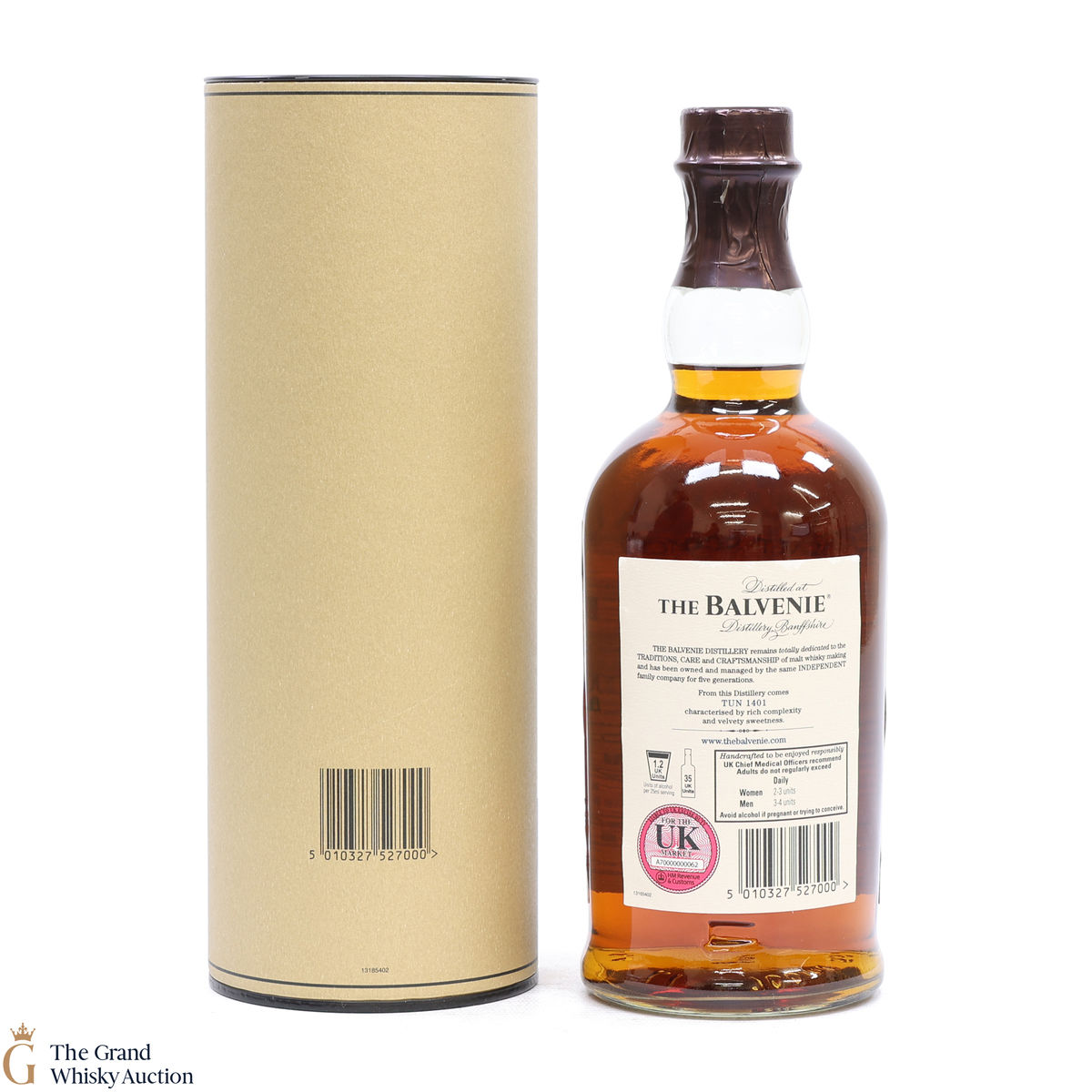 Seven traditional whisky casks & three sherry butts were hand-selected by Malt Master David Stewart from Warehouse 24 at Balvenie Distillery to make Tun 1401 Batch 2. They were combined and rested for several months in Tun 1401 – The Balvenie’s traditional oak marrying vessel.