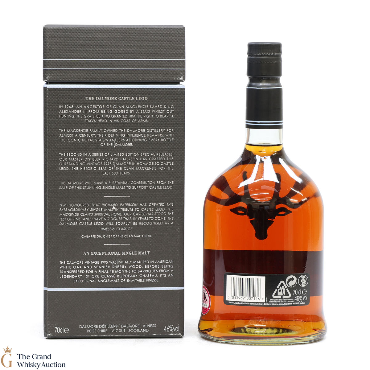 Castle Leod is the second release in the series. It was distilled in 1995 and bottled in 2011. It was matured in American white oak and Spanish sherry wood, before being finished in Bordeaux casks for a final 18 months. It was bottled at 46% ABV.