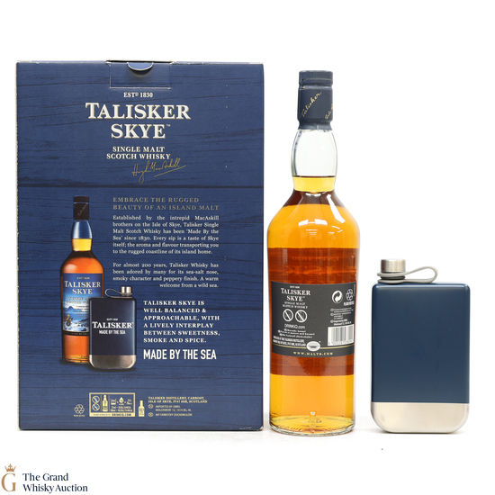 Talisker single malt scotch whisky is from the oldest distillery on the Isle of Skye. Talisker Skye was introduced in early 2015, named after the beautiful island on which the distillery resides. It has been matured in a combination of refill and toasted American oak casks, with a slightly higher proportion of toasted casks.