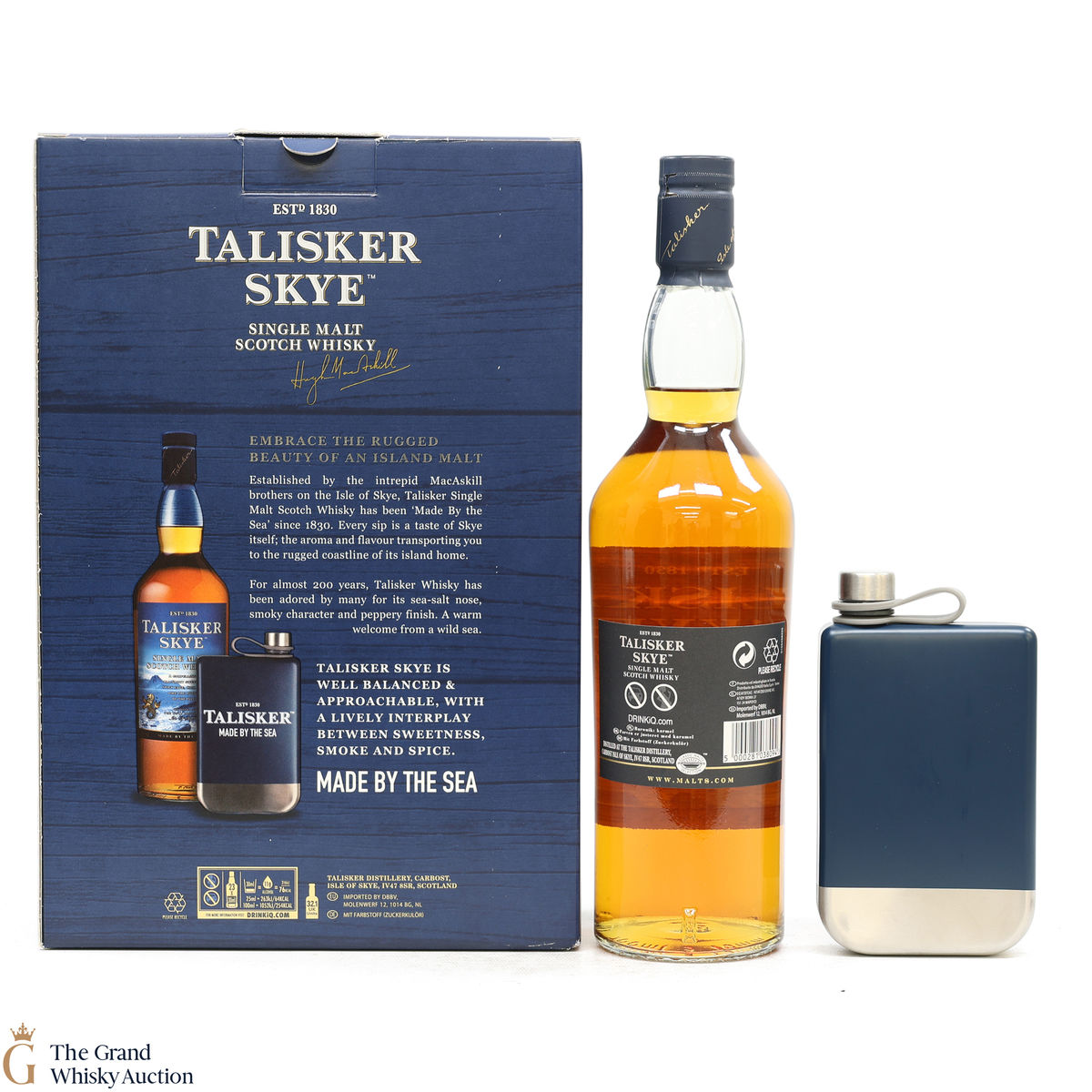 This lot also includes a Talisker branded hipflask.