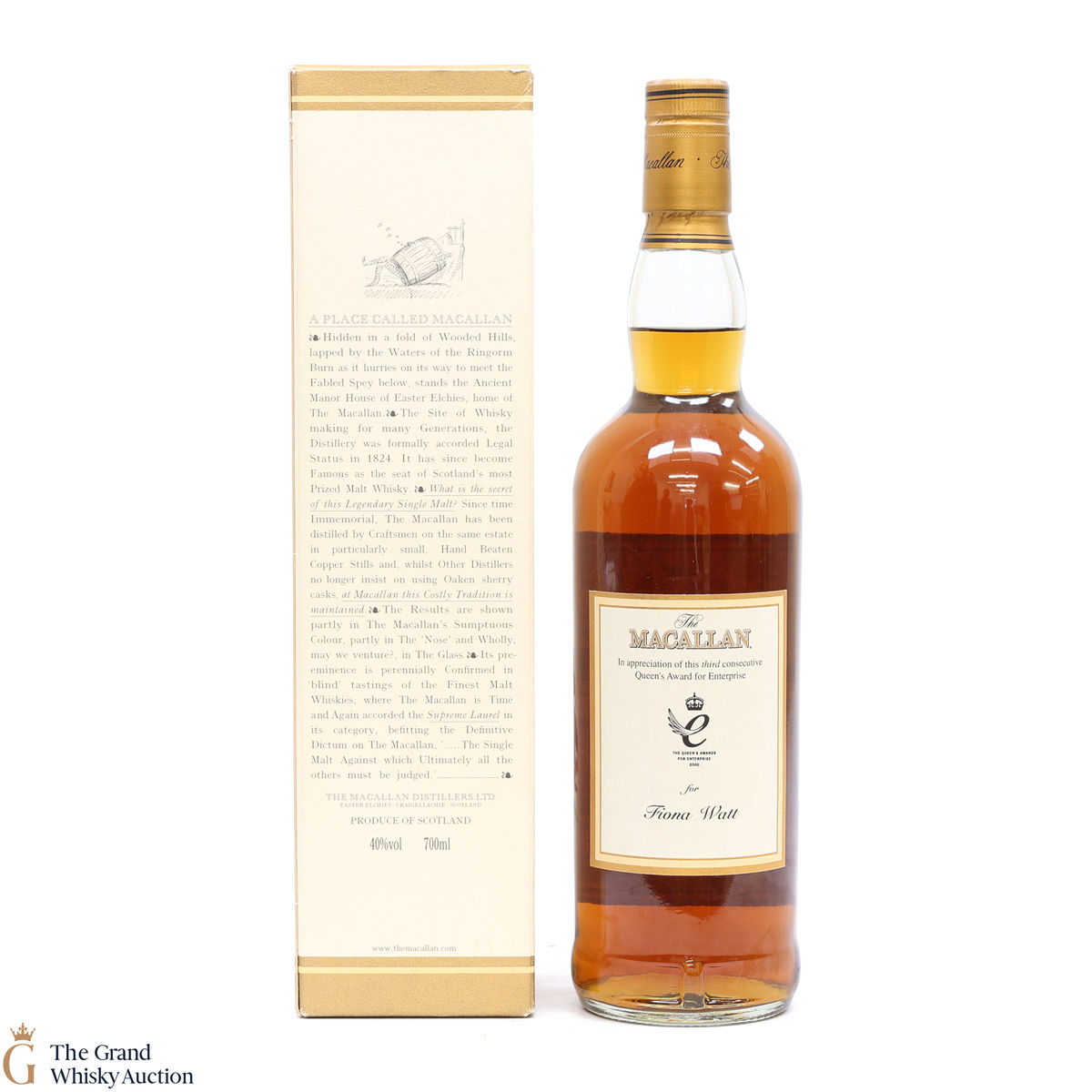 Due to the various ages of bottles and their seals, the condition of liquid is at the buyer's discretion and no claim can be lodged against failure/leakage in transit. Loss and breakage cover is available at 3% of the hammer price as standard. If the lot is not insured, no claim can be lodged against the courier or The Grand Whisky Auction for breakage or loss in transit.
