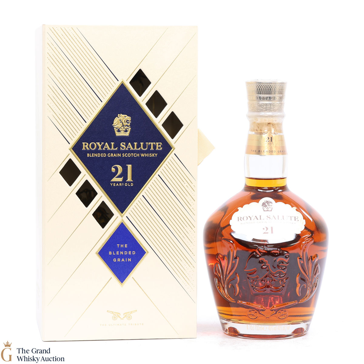 This Royal Salute 21-Year-Old is a blended grain whisky. Bottled at 40% ABV. This is the first Royal Salute to be bottled in a fully transparent flagon.