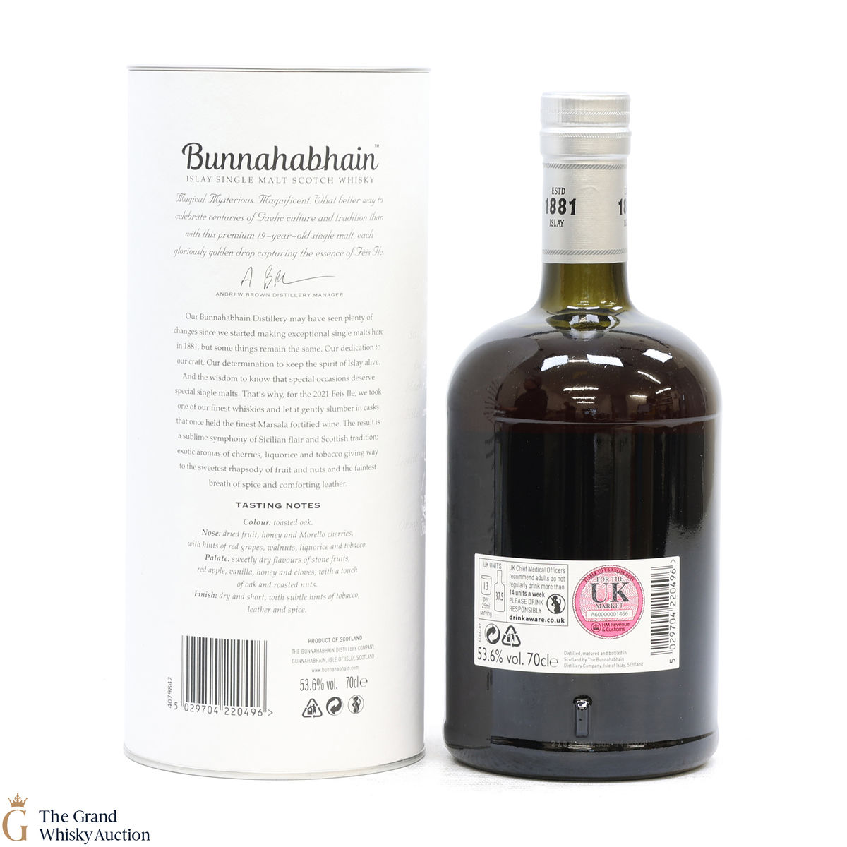For Feis Ile 2021, Bunnahabhain Distillery released this unique bottling. Distilled back on the 8th of October 2001, this single malt was finished in a cask that once held Marsala fortified wine resulting in a combination of Sicilian flair and Scottish tradition. Bottled on the 19th of January 2021, this is one of only 1333 bottles produced.