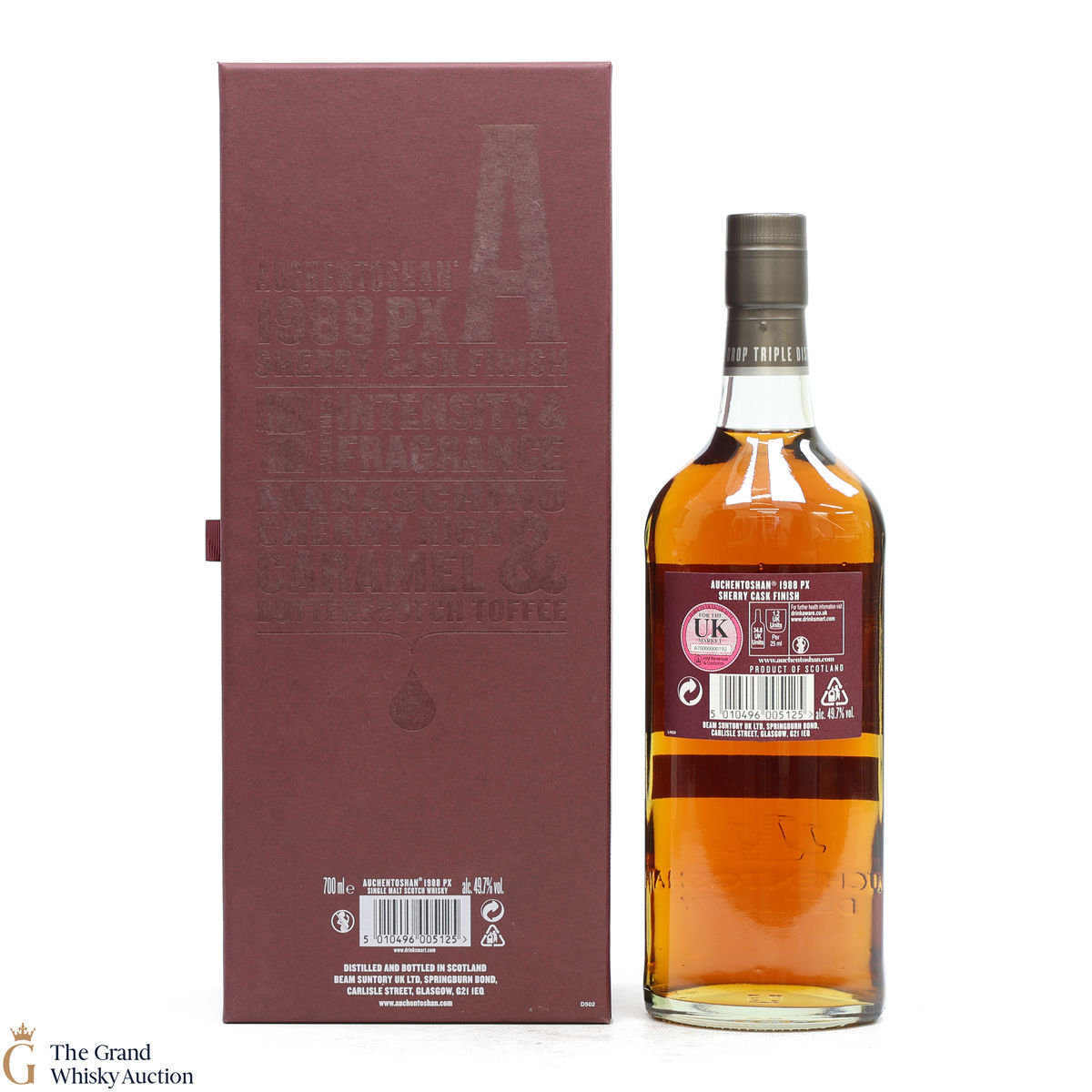 Due to the various ages of bottles and their seals, the condition of liquid is at the buyer's discretion and no claim can be lodged against failure/leakage in transit. Loss and breakage cover is available at 3% of the hammer price as standard. If the lot is not insured, no claim can be lodged against the courier or The Grand Whisky Auction for breakage or loss in transit.