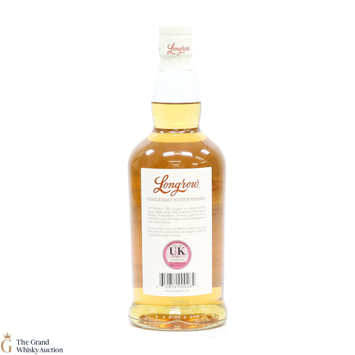 A bottle of Longrow Peated - This is essentially the awesome Longrow C.V. bottling in new packaging, which used to be Longrow's entry-level whisky. Longrow is Springbank's heavily peated whisky - this is a no age statement expression.