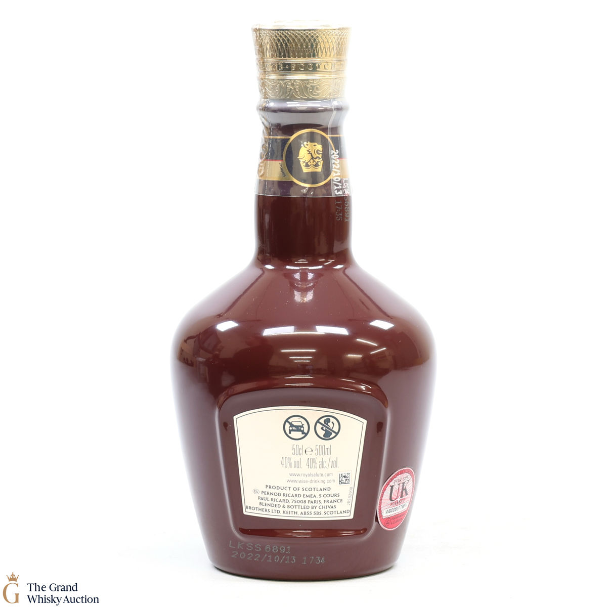 Due to the various ages of bottles and their seals, the condition of liquid is at the buyer's discretion and no claim can be lodged against failure/leakage in transit. Loss and breakage cover is available at 3% of the hammer price as standard. If the lot is not insured, no claim can be lodged against the courier or The Grand Whisky Auction for breakage or loss in transit.